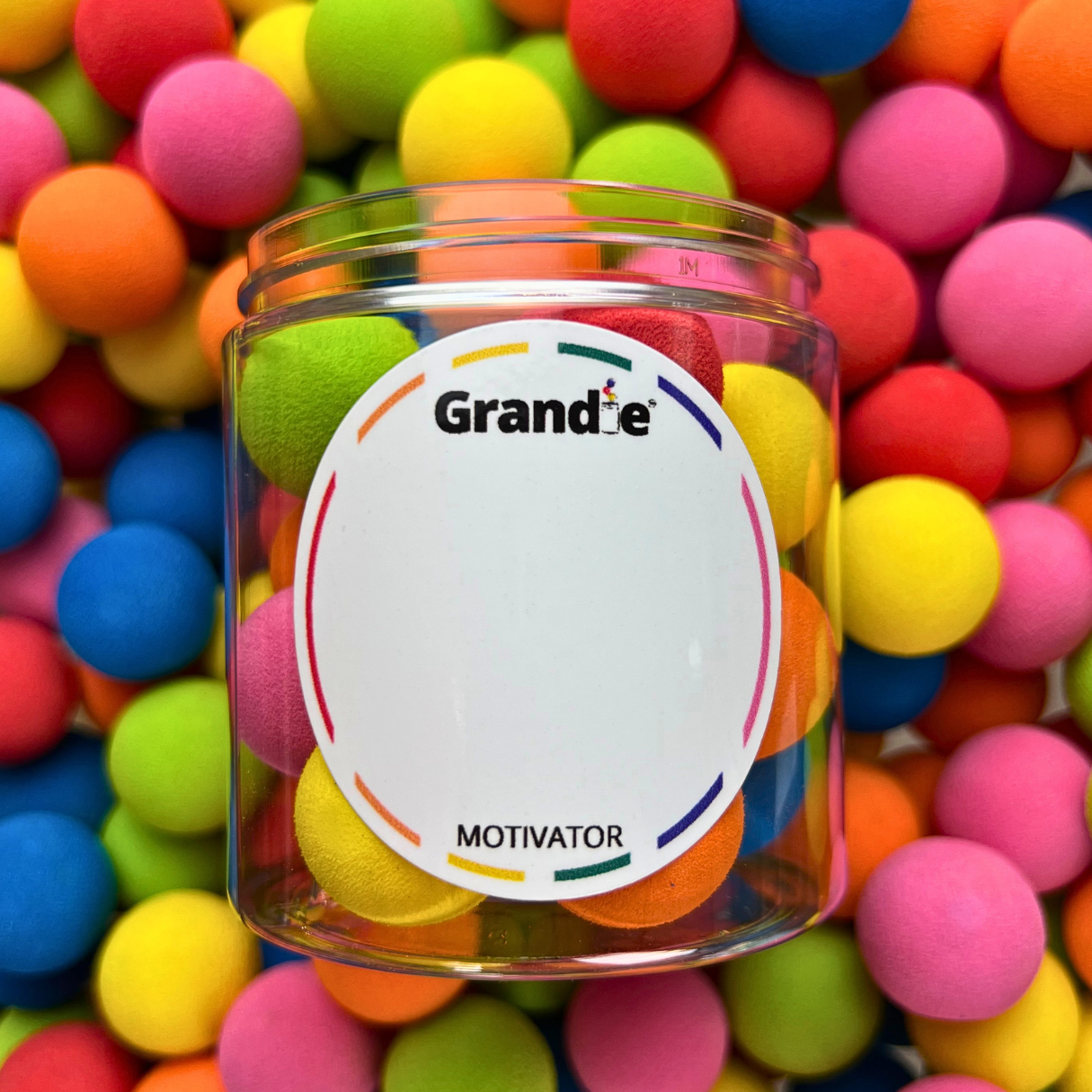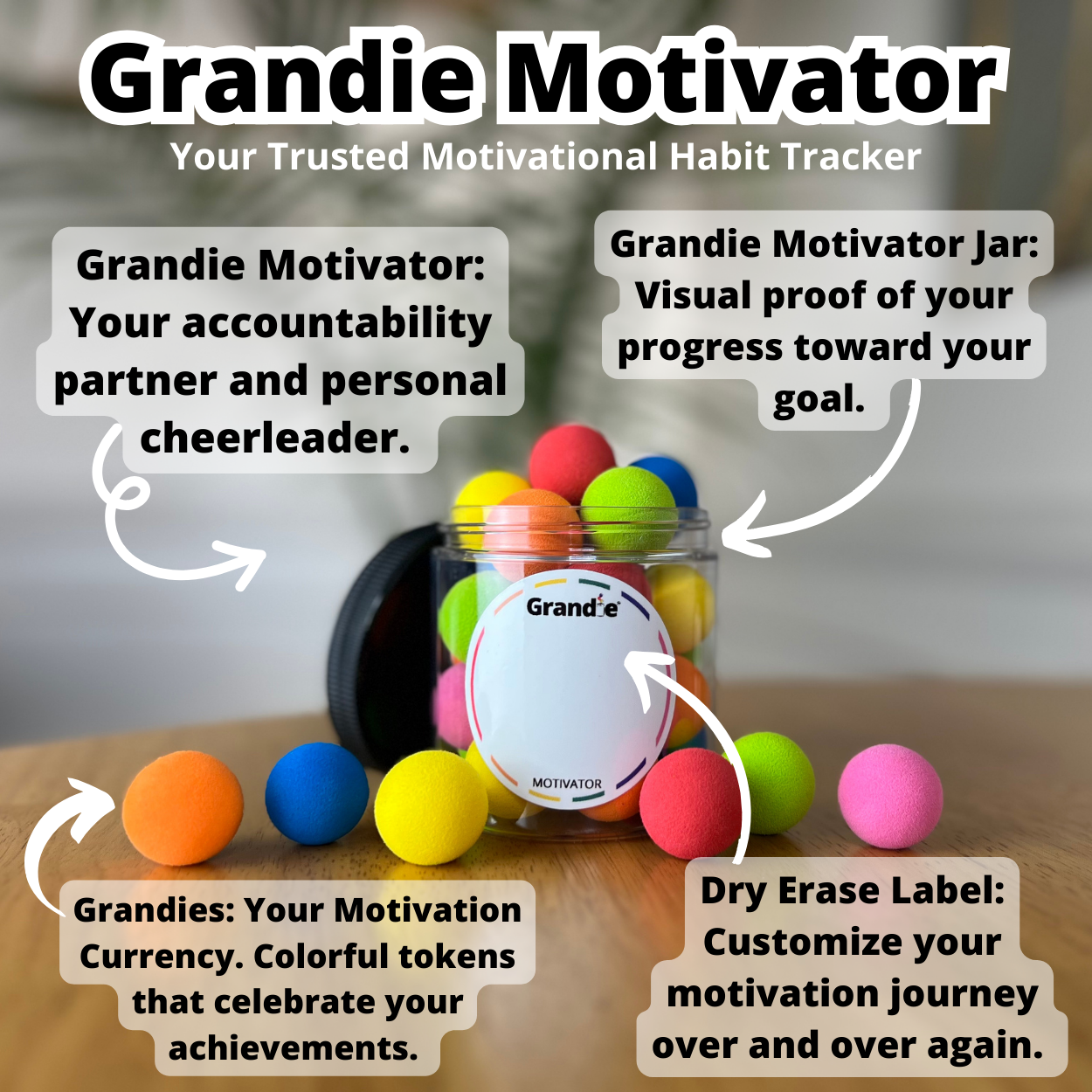 - Earn Grandies: As you make progress toward your goal, reward yourself with Grandies, colorful tokens that symbolize your achievements. Each Motivator Jar comes with 24 Grandies in six vibrant colors.
